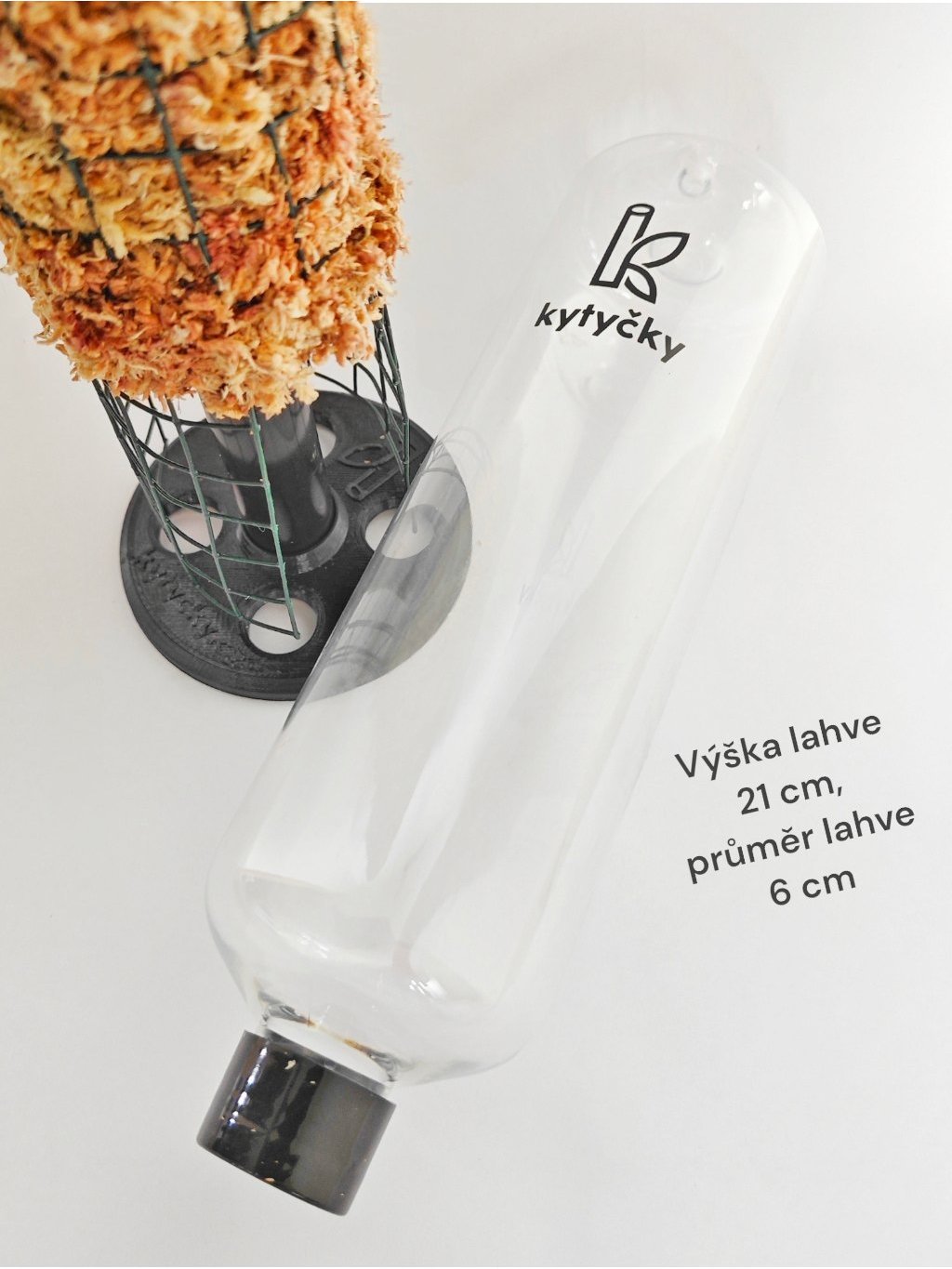 Kytyčky v provedení LIGHT jsou na svém vrcholu zakončeny prohlubní v rašeliníku pro usazení zavlažovací lahve. Při potřebě závlahy se lahev s vodou jednoduše hrdlem dolů nasadí do prohlubně v rašeliníku na vrcholu Kytyčky. Po vsaku vody ze zavlažovací lahve je možné lahev na Kytyčce ponechat, pokud esteticky neruší vzhled nebo ji jednoduše sundáte a uschováte pro další závlahu. Více informací o tom jak funguje závlaha Kytyček.