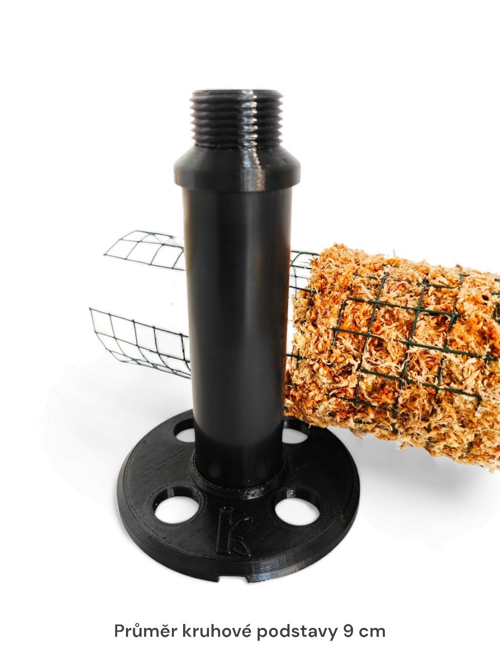 V substrátu je Kytyčka upevněna pomocí podzemní části - stojanu s podstavou. Ten zajistí stabilitu Kytyčky i rostliny v květníku/květináči a zároveň díky svojí výšce (vyroben na míru dle výšky vašeho květníku) zabraňuje přemokření substrátu mokrým rašeliníkem. Stojan lze z Kytyčky vyšroubovat a v budoucnu při přesazování do jiného květníku nahradit novým stojanem s odlišnou výškou. Průměr kruhové podstavy stojanu je 9 cm (u Kytyček vysokých 40 cm a 60 cm) nebo 11 cm (u Kytyček vysokých 80 cm a 100 cm). Výšku stojanu si volíte sami dle velikosti vašeho květníku v konfigurátoru výše. Podrobnější informace jak změřit/zvolit výšku stojanu.
